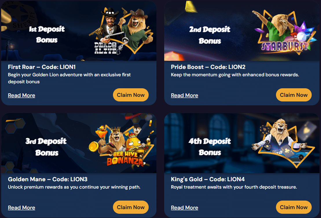 Golden Lion Casino delivers an exciting world of promotions designed to elevate every player’s experience. From generous welcome rewards to daily bonuses and seasonal events, there are countless ways to make each session more rewarding. New players can start their journey with a 400% Up To £2000 + 100 Free Spins First Deposit Bonus, giving an immediate boost to their gameplay and more chances to explore the platform. Golden Lion Casino’s instant offers are crafted to reward engagement from the moment you log in, allowing players to discover new games, extend their playtime, and chase bigger wins. With a focus on fairness, fun, and seamless enjoyment, these promotions add an extra layer of excitement to every visit.